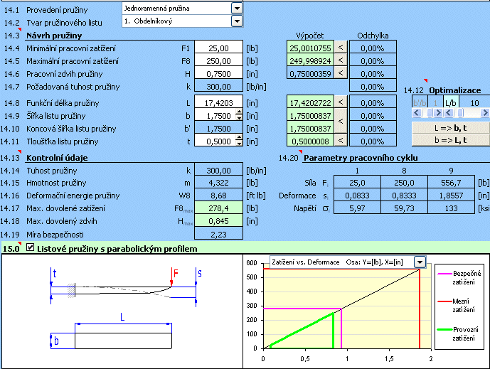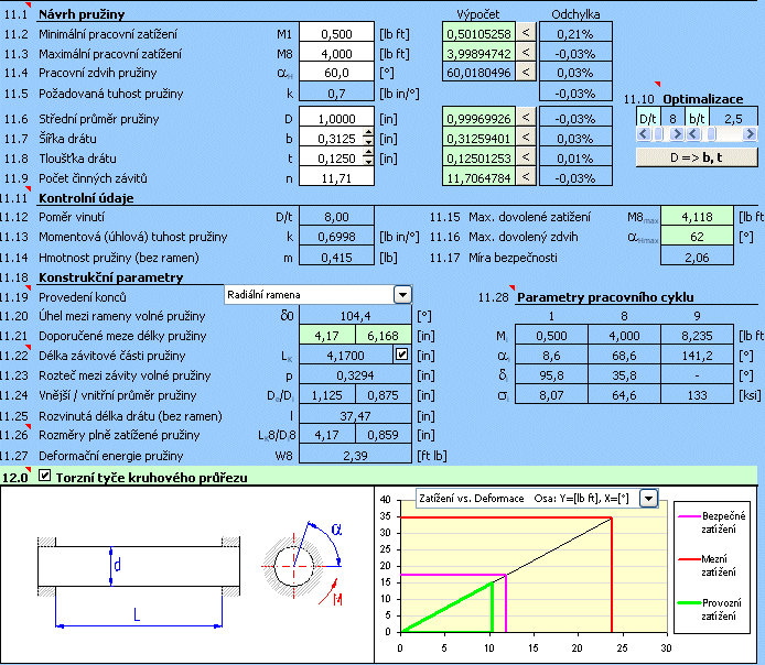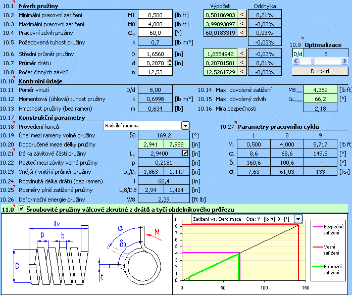 Výpocet je urcen pro geometrický a pevnostní návrh kovových pružin ruzných typu a provedení, namáhaných statickým resp. cyklickým zatížením.