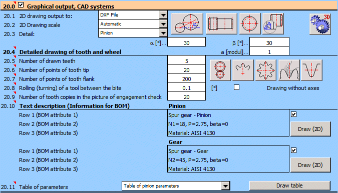 Geometric design and strength check of spur gear (external, internal, gear rack) with straight and helical toothing. Exact 2D, 3D model.