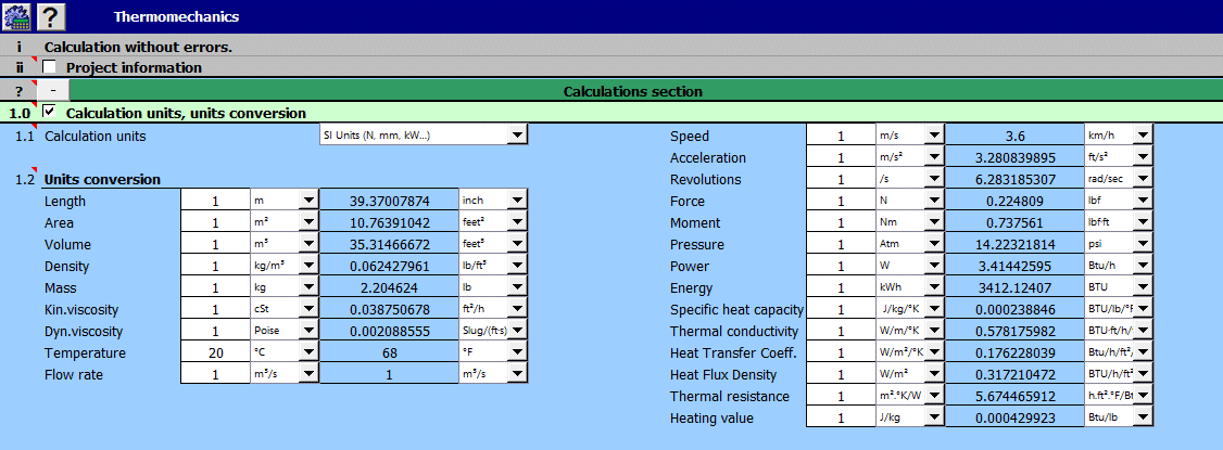 The calculation addresses: energy, ideal gas, heat transfer through a composite wall, finned wall and tube bundle solutions, heat exchangers, radiation and more.
